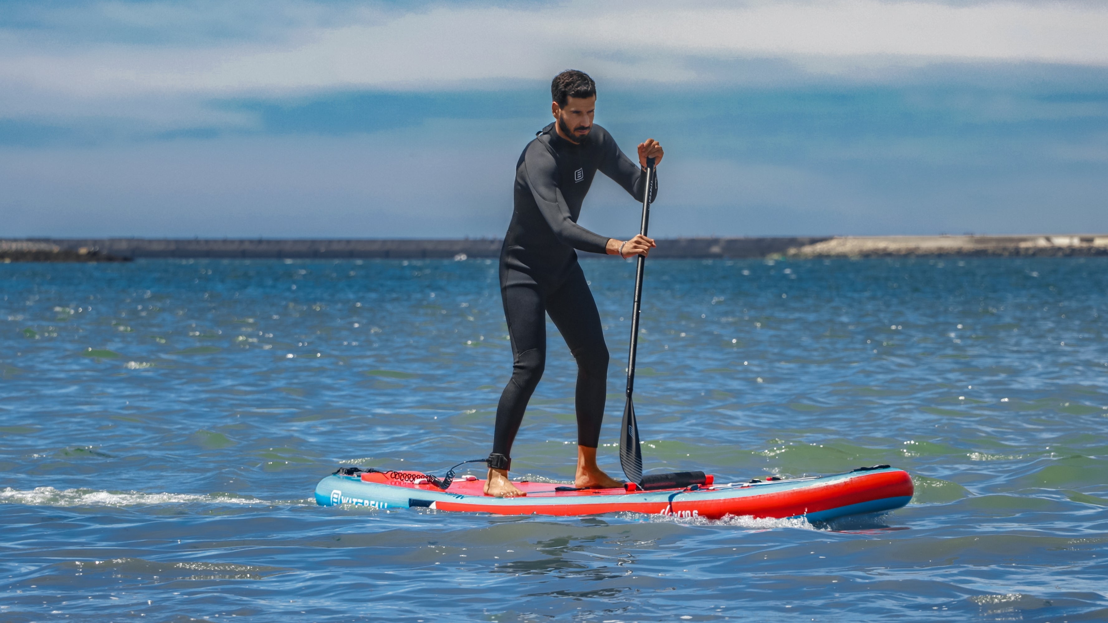 The Waterfall 10’6 All Around SUP is suitable for beginner paddlers up to approx. 120 kg, offering high stability and easy handling in flat water and small waves.